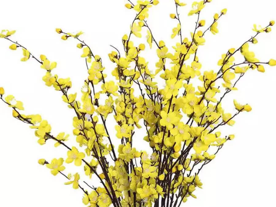 Đầu tiên bạn hãy tìm thân cây khô có cành trên ngắn và dưới dài để làm thân cây mai. Sau đó mua một số bông mai giả và nụ hoa để gắn lên cành làm thành cây mai vàng siêu rực rỡ và bắt mắt nhé!