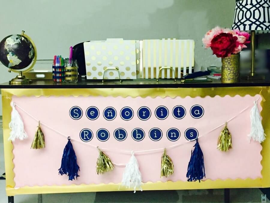 Ngoài các trang trí xung quanh lớp học ra thì bàn giáo viên cũng là nơi được làm mới mà các học sinh không nên bỏ lỡ. Đây là cách tuyệt vời nhất để các bạn tri ân thầy cô.