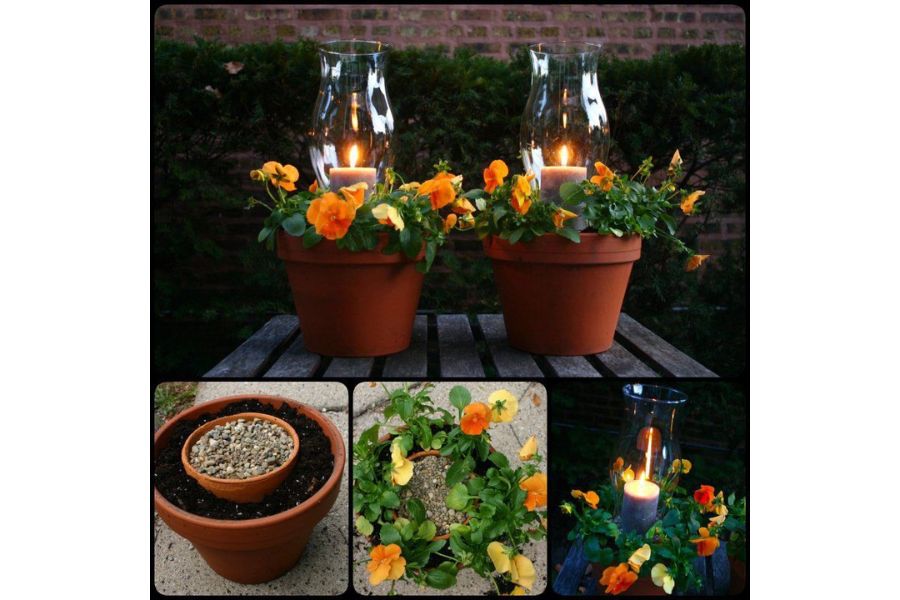 Đặt nến ở giữa chậu cây tạo lãng mạn