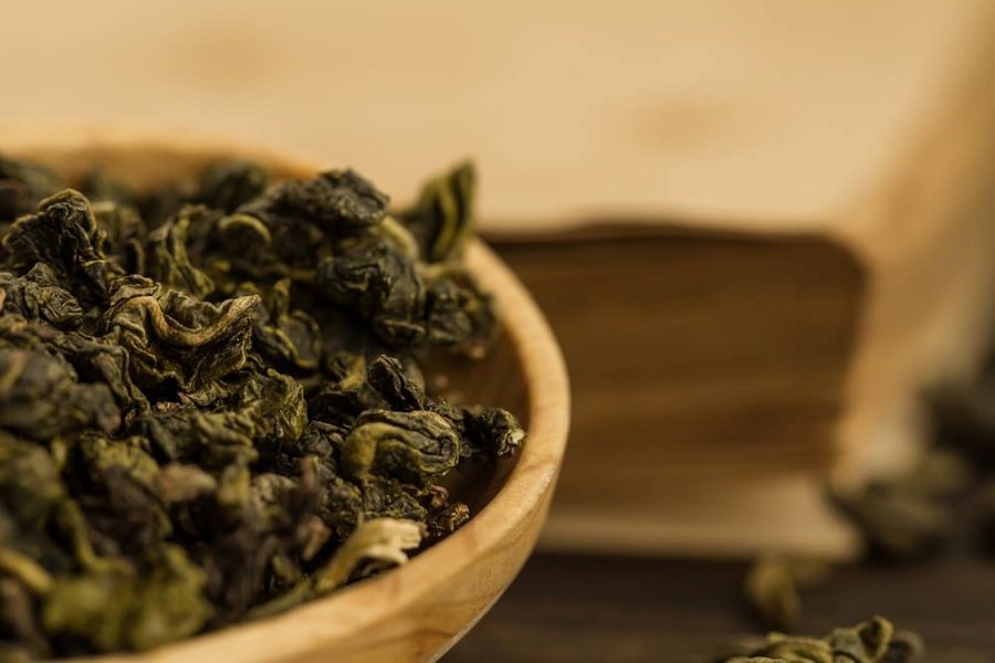 - Cho 1 muỗng cà phê lá trà ô long khô vào ngâm trong 5 – 10 phút.