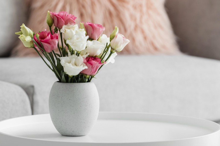 Bạn có thể thay thế bằng lọ hoa, màu sắc của hoa sẽ giúp cho bàn làm việc trở nên sinh động nhiều hơn đó. Và cũng giống như cây xanh, nó có tác dụng trong việc điều hòa không khí phòng rất tốt.