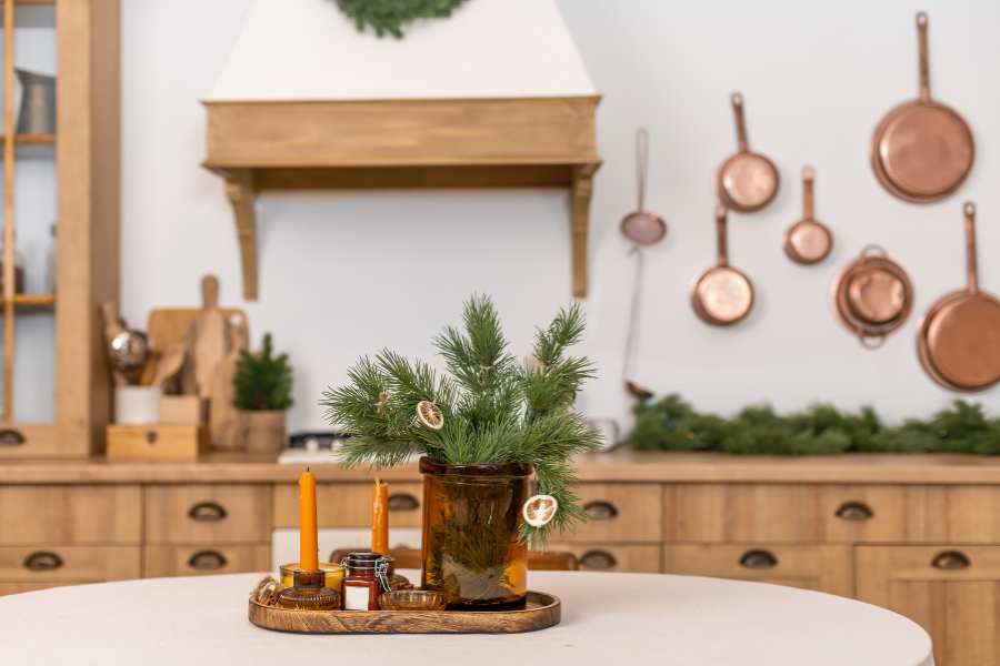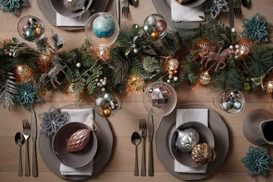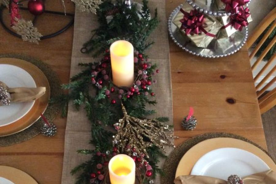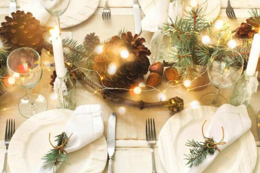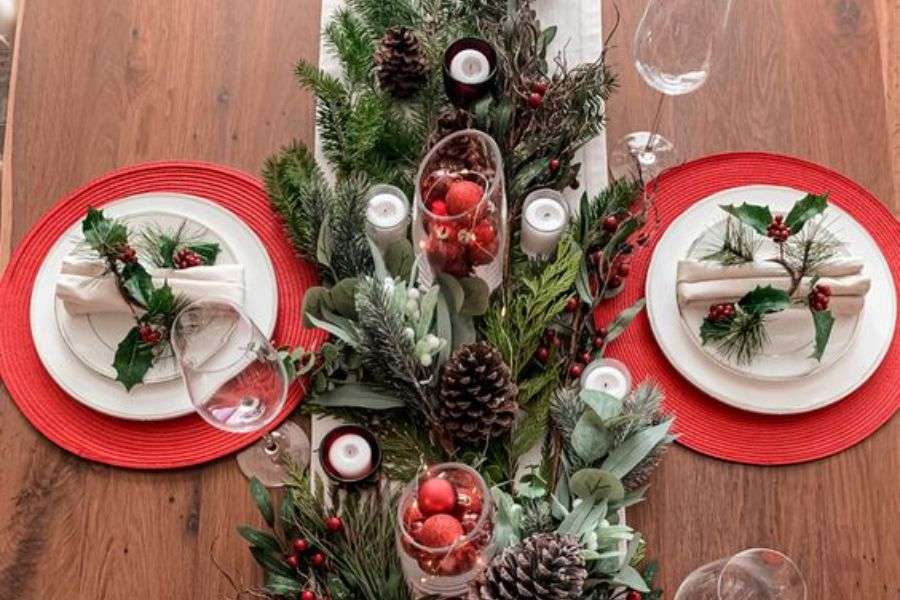 Trang trí bàn tiệc Giáng sinh với lá thông xanh