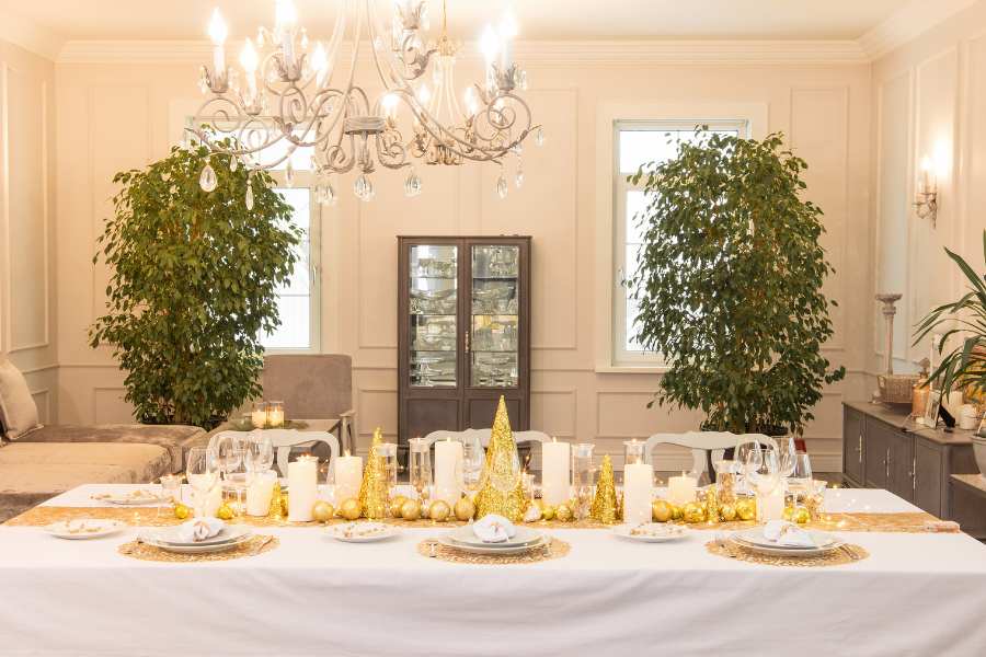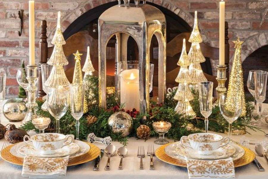 Trang trí bàn tiệc Noel với gam màu vàng kim