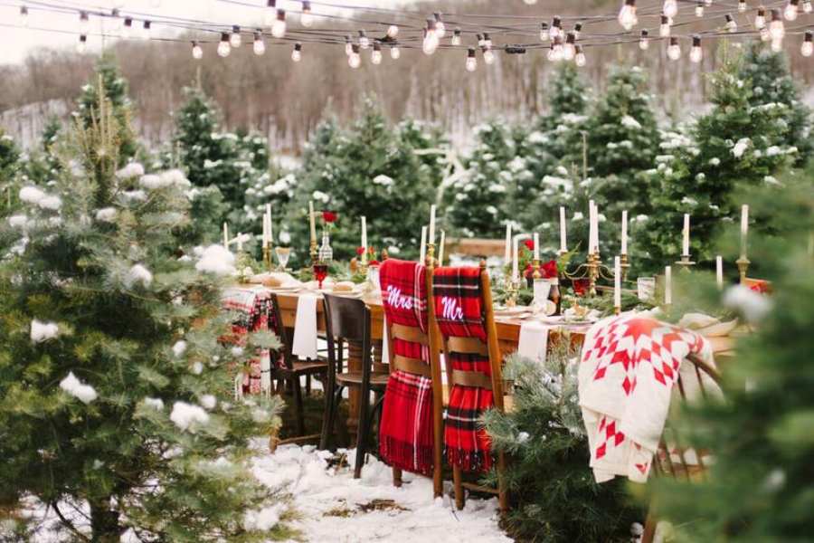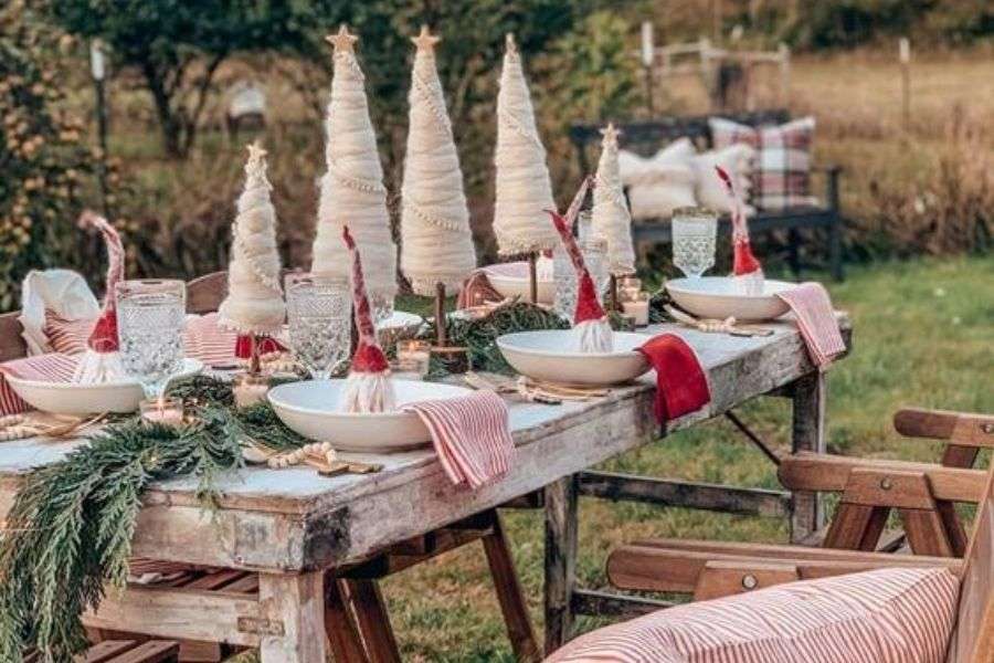 Decor bàn tiệc Giáng Sinh ngoài trời