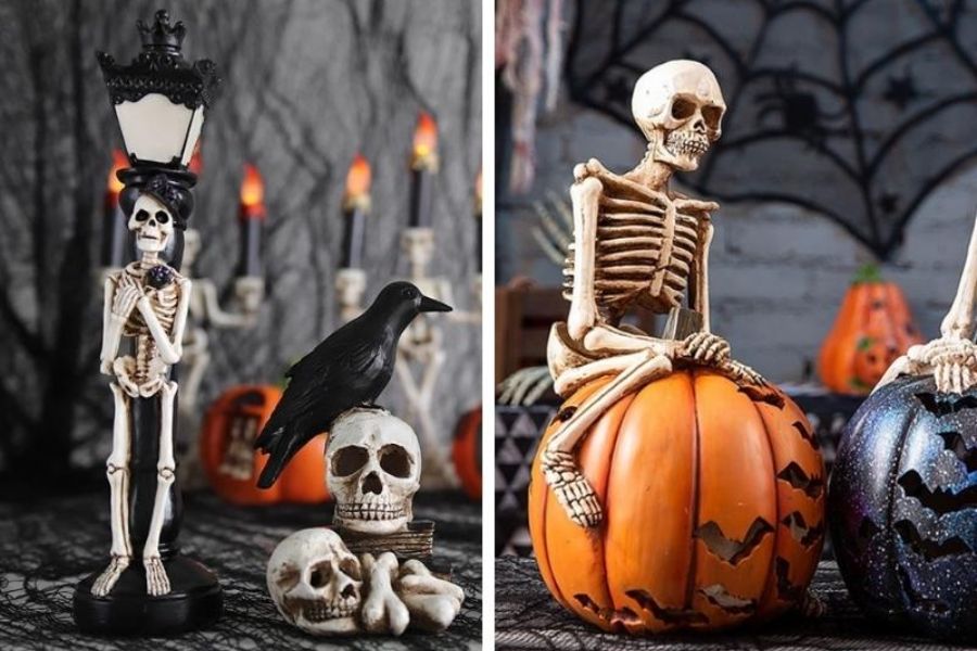 Để tăng thêm tính kinh dị cho bàn tiệc thì bạn đừng quên thêm những vật trang trí có hình bộ xương nhé. Mô hình bộ xương là hình ảnh quen thuộc trong các bộ phim kinh dị, các hoạt động hóa trang,… Nếu bạn áp dụng mô hình này thì bàn tiệc Halloween sẽ càng trở nên độc đáo hơn.