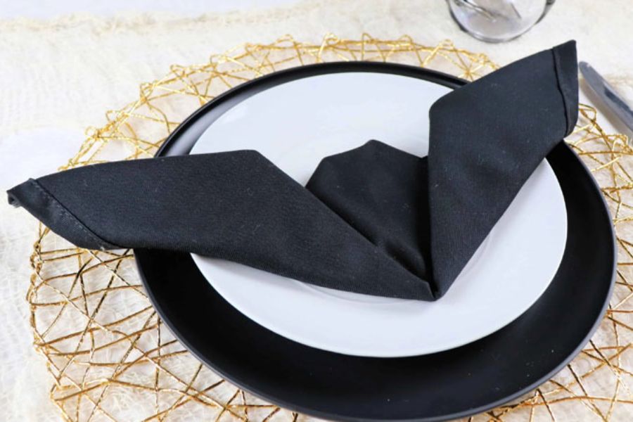 Công cụ cần có chỉ đơn giản gồm một chiếc khăn màu đen hình vuông, một chiếc đĩa màu trắng và một đôi tay khéo léo của bạn. Các bước thực hiện như sau: