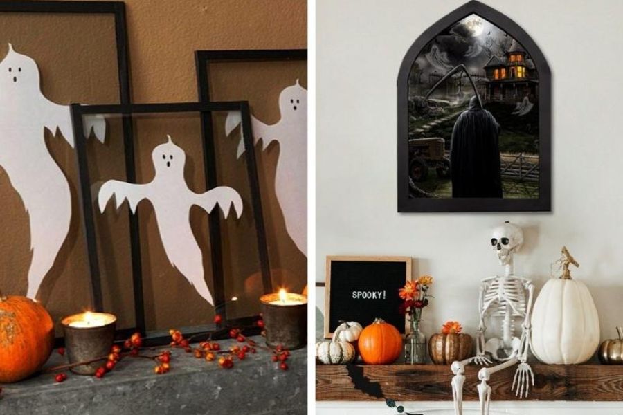 Để cho bàn tiệc của bạn trông thu hút hơn thì bạn cũng có thể cân nhắc việc bày những bức tranh chủ đề Halloween. Những bức tranh này sẽ thường là các quả bí cô, hình con ma, hình nhện, hay đầu lâu,… Tùy theo kích thước bàn tiệc mà lựa chọn kích thước tranh cho phù hợp bạn nhé!
