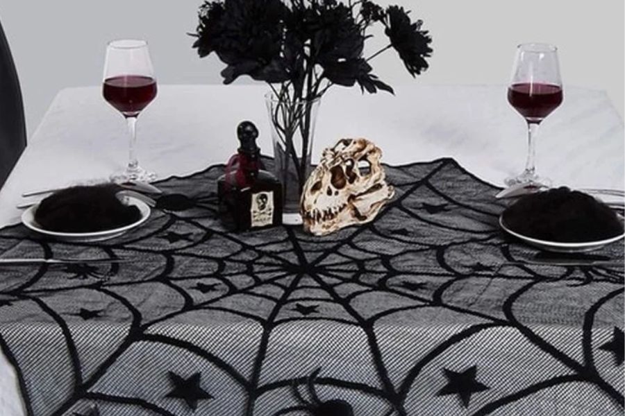 Tuy nhiên, để cho mọi thứ trở nên đơn giản và nhanh chóng hơn thì chúng tôi sẽ gợi ý cho bạn ý tưởng trang trí bàn tiệc bằng một chiếc khăn trải bàn hình mạng nhện.
