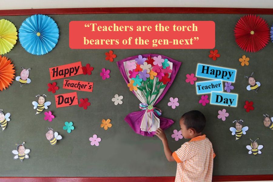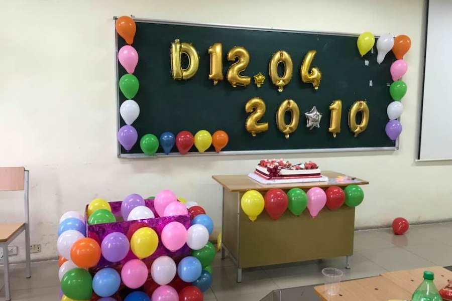 Lưu ý: Bạn có thể dùng thêm bóng bay hình ngôi sao hay bông hoa để trang trí thêm trên bảng đen nhằm tăng tính thẩm mỹ.