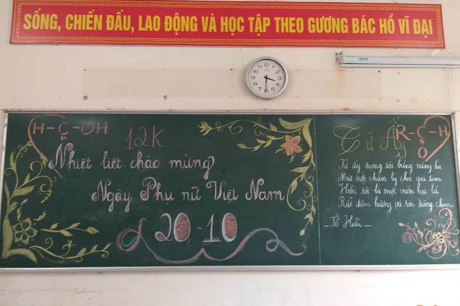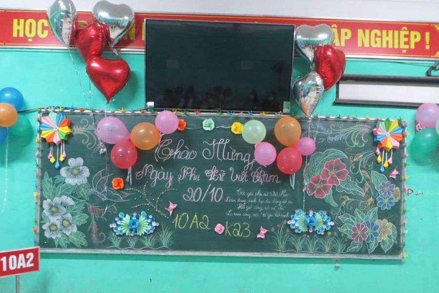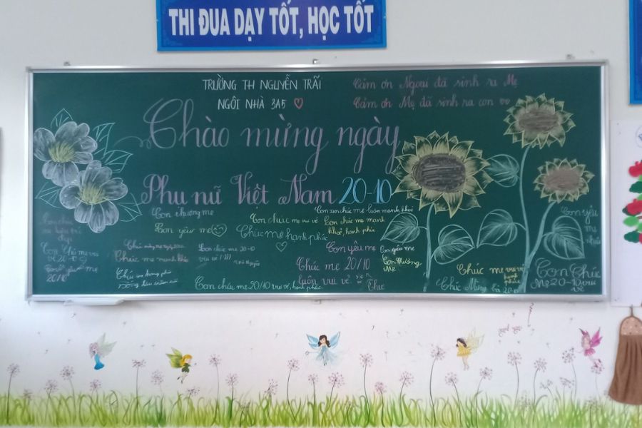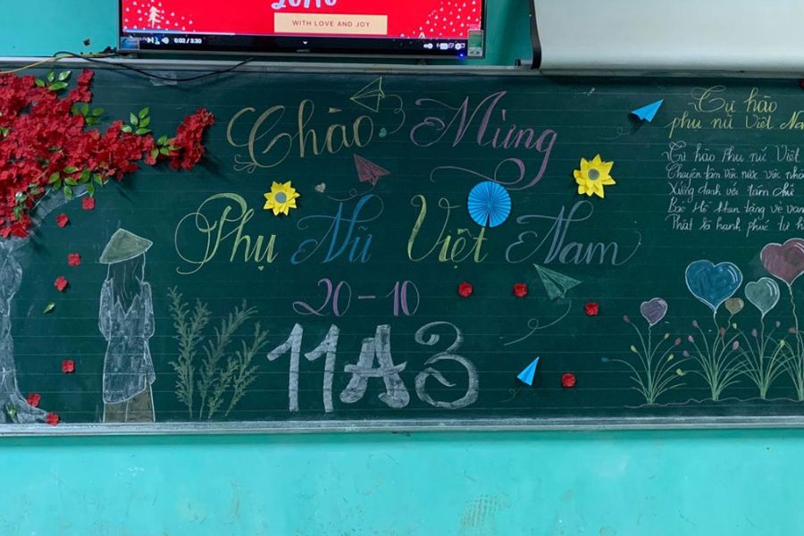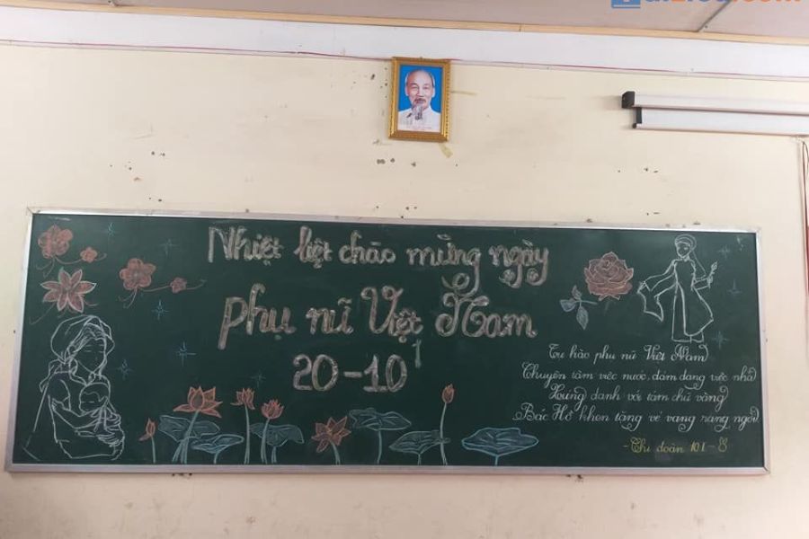 Một chiếc bảng lớp học được trang trí đẹp mắt sẽ là món quà ý nghĩa dành tặng cô giáo và các bạn nữ nhân ngày 20/10. Những hình ảnh tinh tế và lời chúc ý nghĩa sẽ giúp tạo không gian ấm áp, tôn vinh phái nữ.