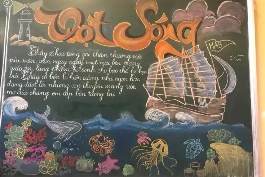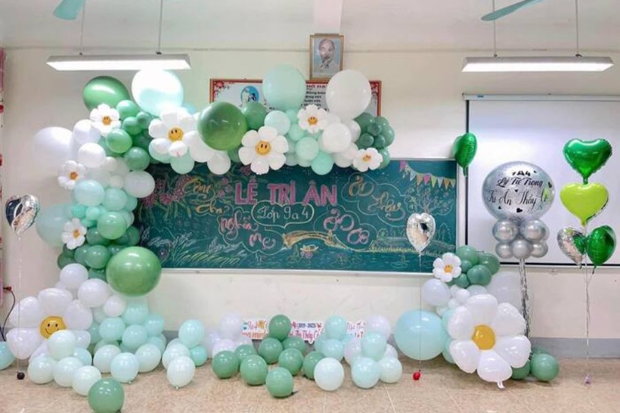 Sử dụng các món phụ kiện trang trí: Bên cạnh phấn màu, dùng các vật dụng như rèm kim tuyến, bóng bay, hoa giấy, đèn led để trang trí cho chiếc bảng nhằm tạo nên một không gian lấp lánh, rực rỡ và tươi vui. Bên cạnh đó, bạn có thể sử dụng thêm các món đồ thủ công, như hộp quà, thiệp, tranh ảnh, bánh kẹo…để tạo nên những món quà ý nghĩa và dễ thương cho cô giáo và các bạn nữ trong lớp.