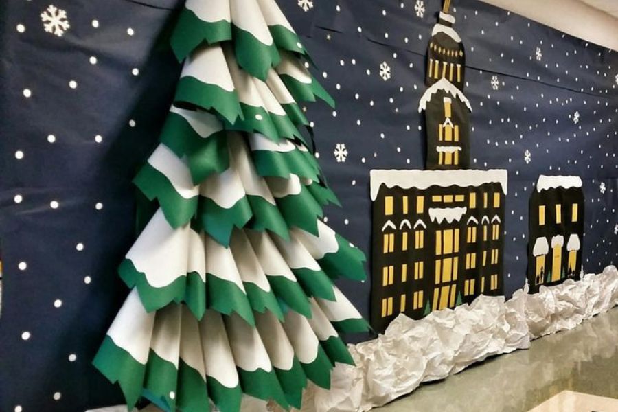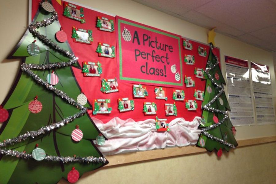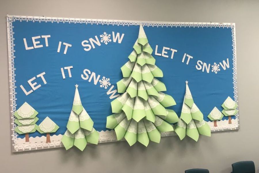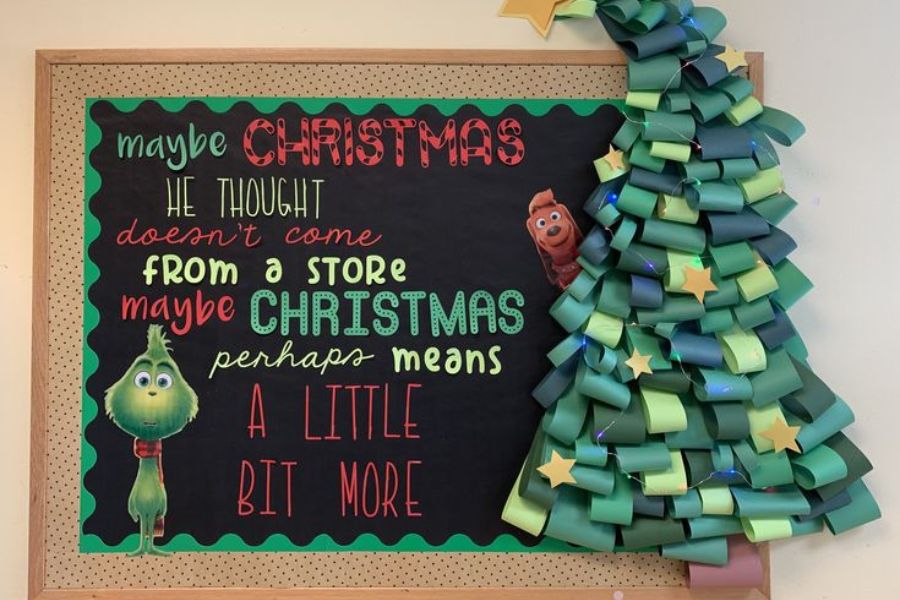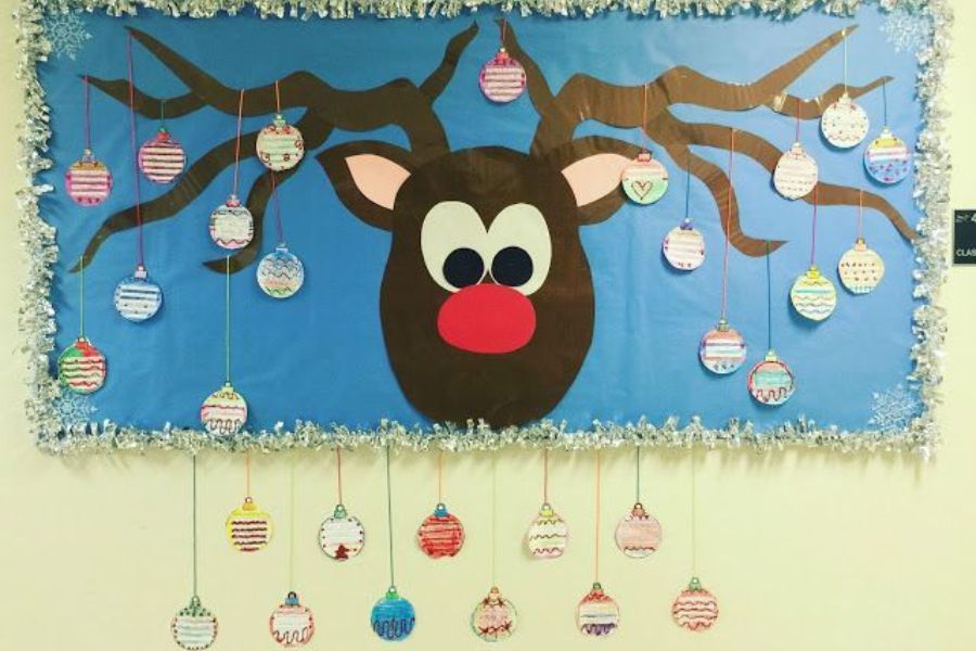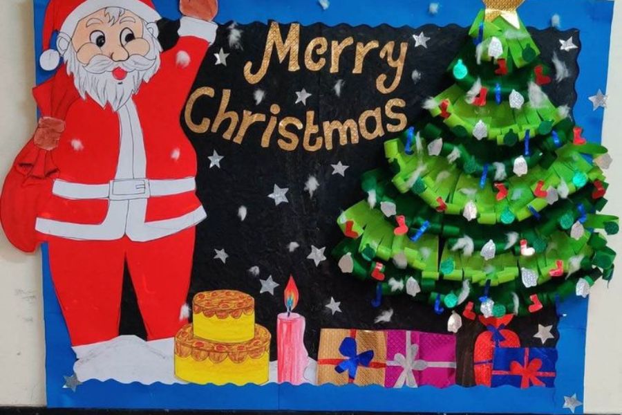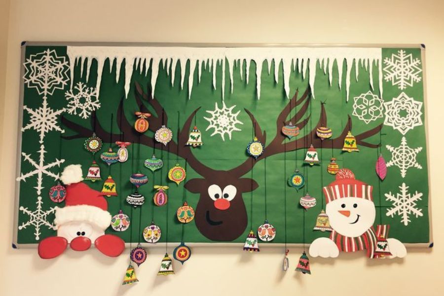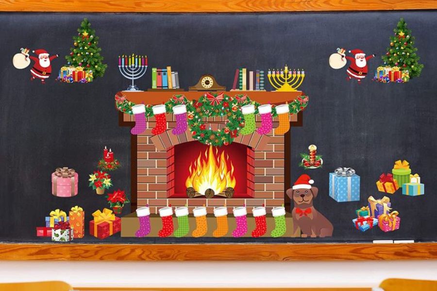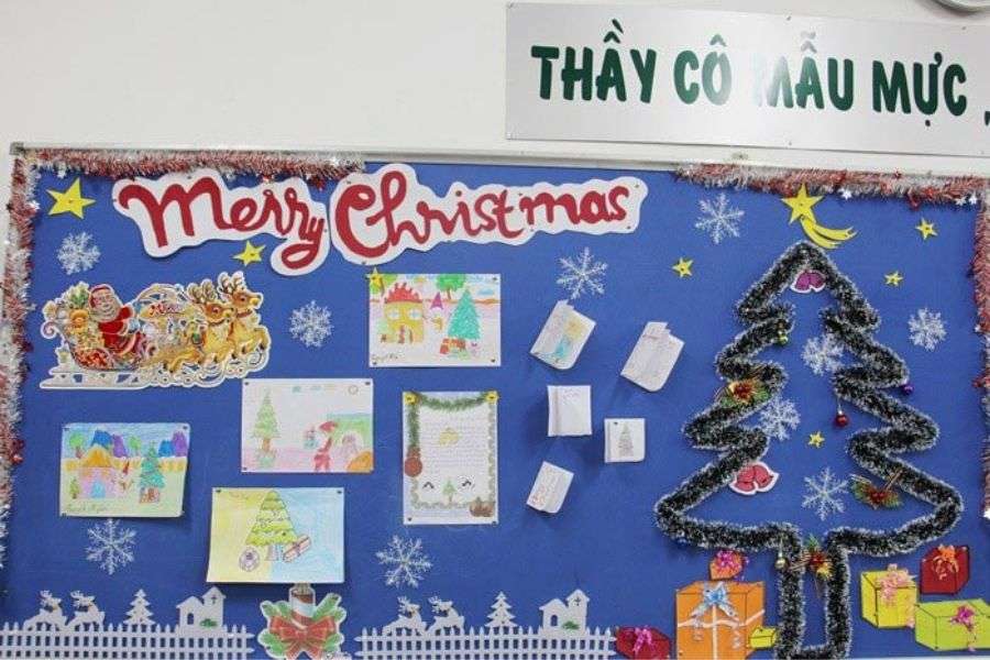 - Trang trí không gian xung quanh: Bạn có thể tận dụng những không gian quanh bảng và lớp học để không khí Giáng Sinh thêm chân thực, sinh động. Đừng quên để không gian trống và khuyến khích học sinh thỏa sức sáng tạo, cùng nhau trang trí lớp học thêm ấm áp, bắt mắt.