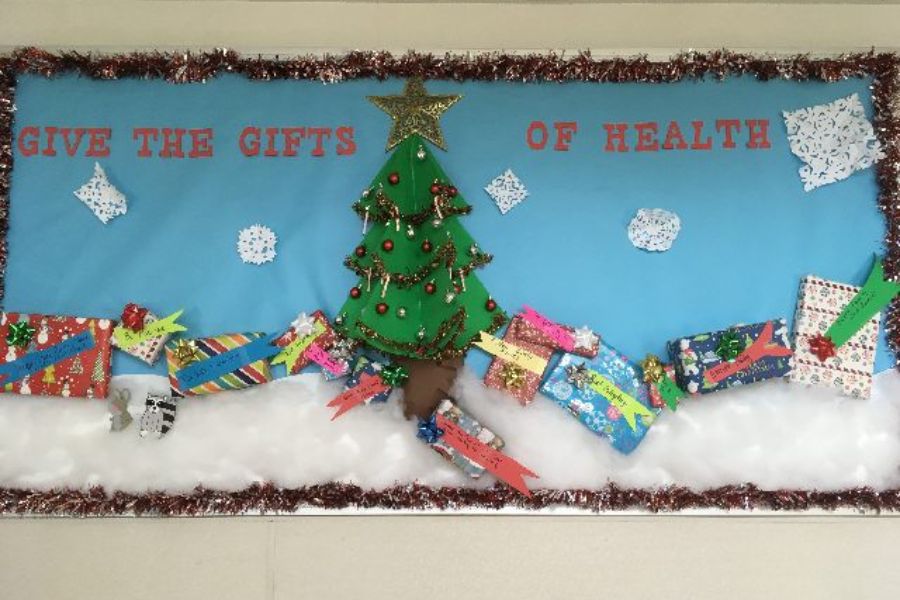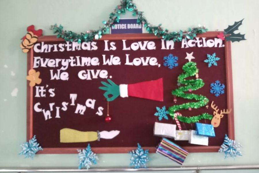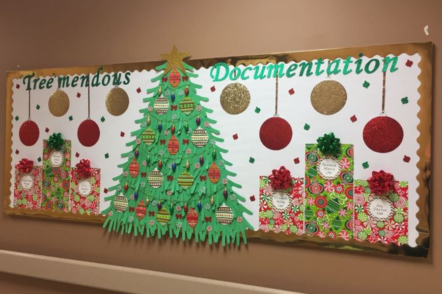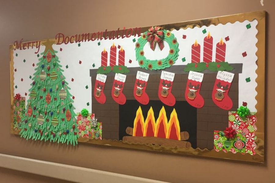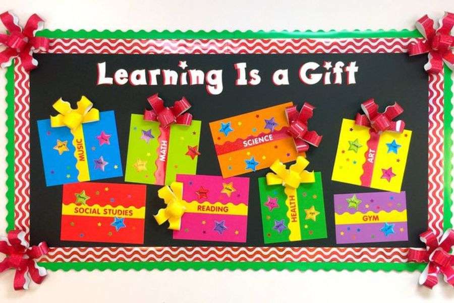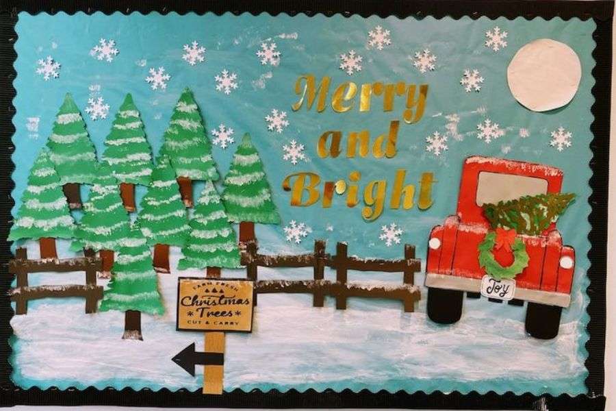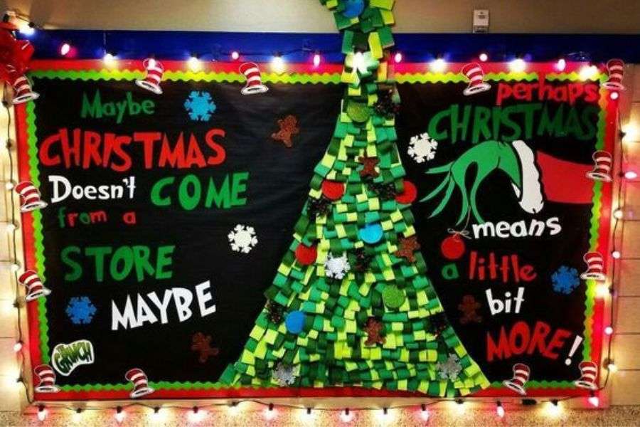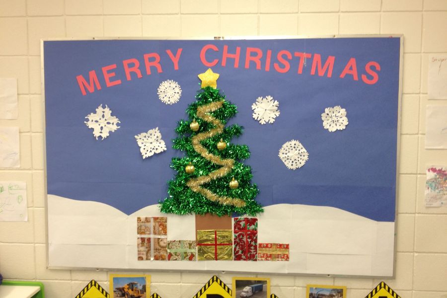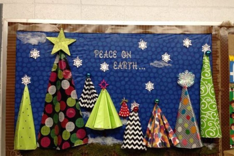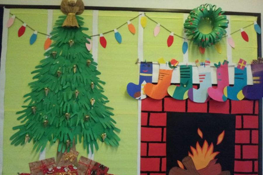 - Trang trí không gian xung quanh: Bạn có thể tận dụng những không gian quanh bảng và lớp học để không khí Giáng Sinh thêm chân thực, sinh động. Đừng quên để không gian trống và khuyến khích học sinh thỏa sức sáng tạo, cùng nhau trang trí lớp học thêm ấm áp, bắt mắt.
