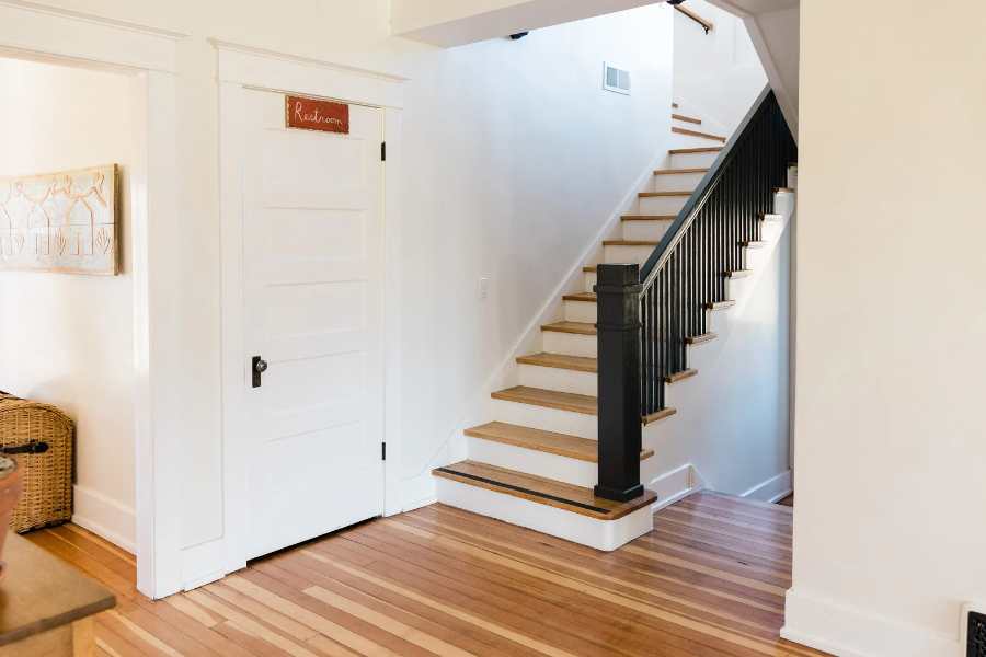 - Lưu ý chân và đỉnh cầu thang không được đặt đối diện với cửa chính của căn nhà.