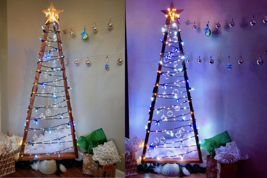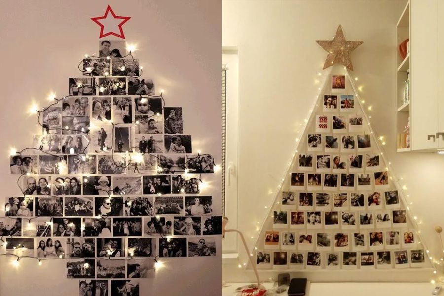Cây thông treo tường từ ảnh chụp và đèn Led