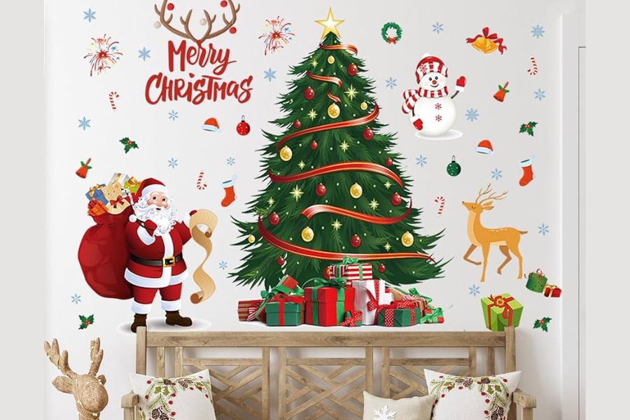 Decal trang trí Giáng Sinh là đồ món đồ có giá tiền phải chăng nhưng chúng có thể mang đến một diện mạo mới cho căn phòng của bạn vào dịp lễ Giáng Sinh. Decal sẽ được bóc và dán trực tiếp trên tường hoặc ở những mặt phẳng như cửa kính, mặt bàn,….