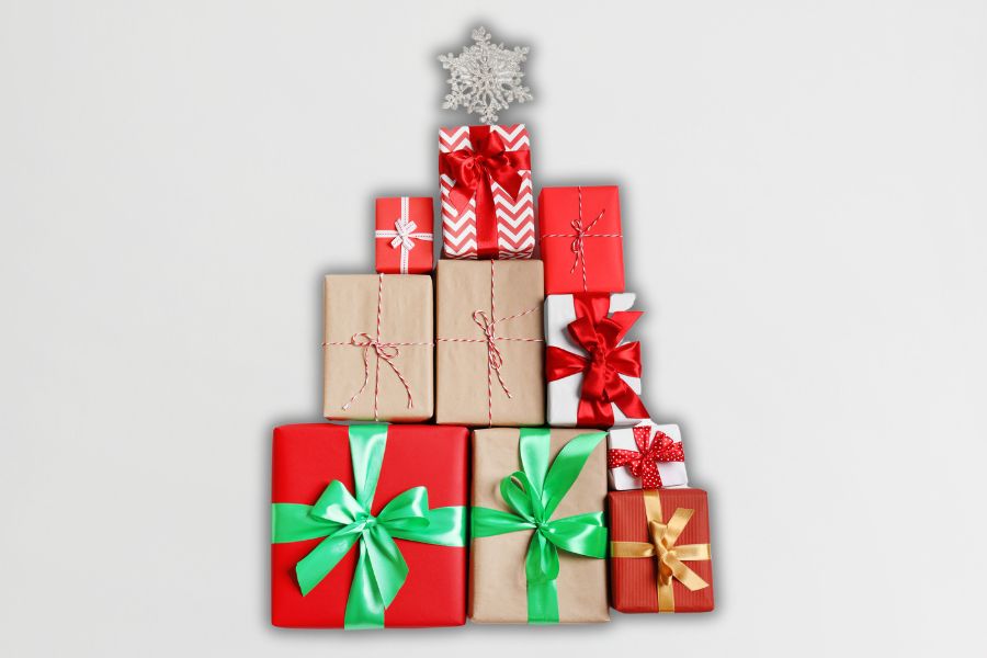 Để tạo mô hình trang trí cây thông Noel trên tường, sẽ những hộp quà với kích cỡ khác nhau. Điều này sẽ làm cây thông dễ dàng tạo ra hình tháp. Đồng thời, để mang đến không khí Giáng Sinh, hãy chọn giấy gói với những màu sắc chủ đạo mùa Noel như đỏ, xanh, vàng, trắng hoặc các hoạt tiết Noel khác.