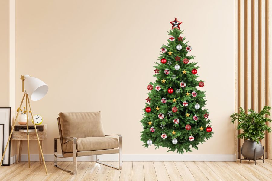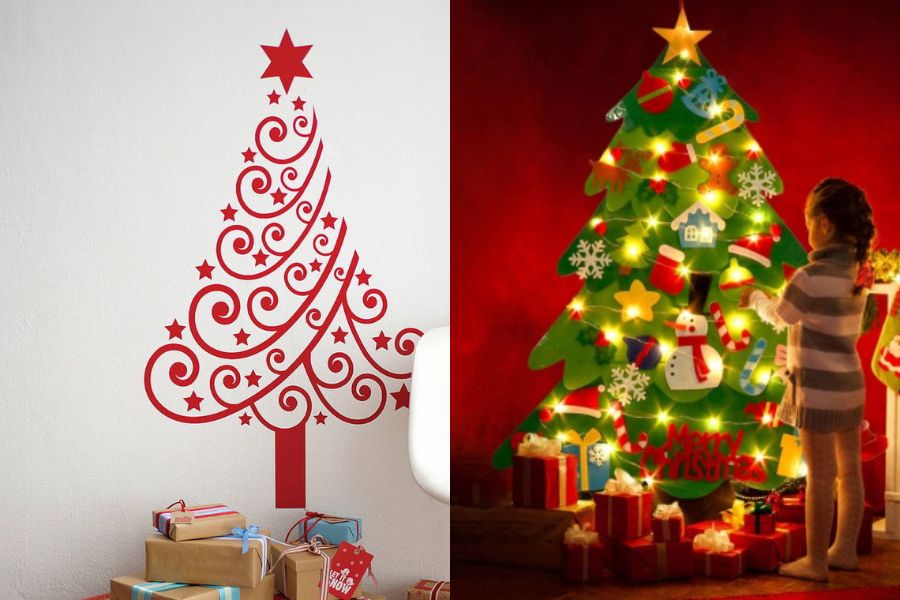 Gợi ý 10+ ý tưởng trang trí cây thông Noel dán tường đẹp, độc đáo