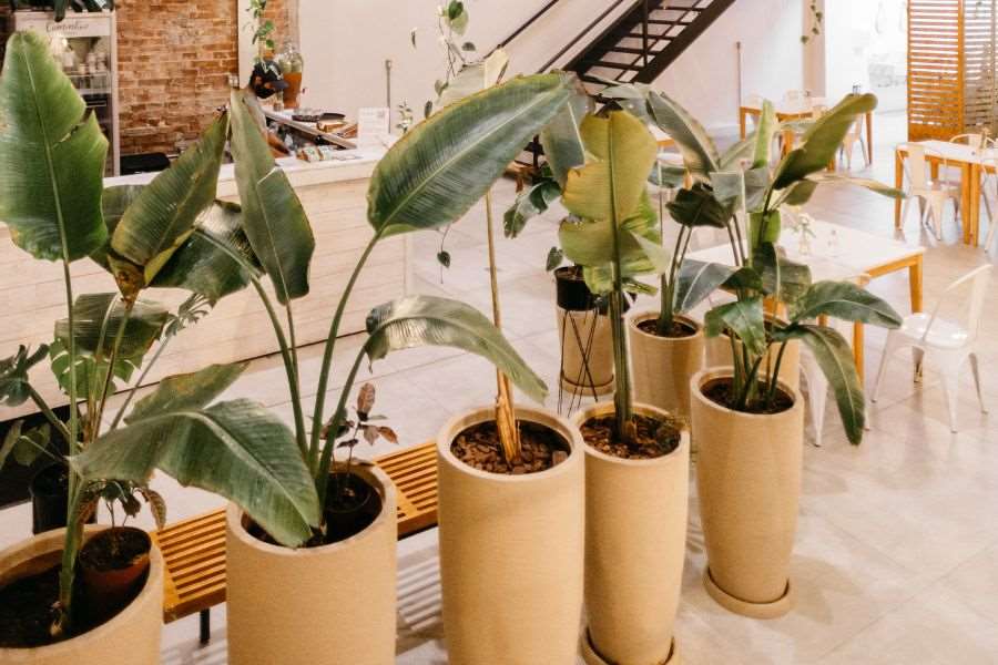 Chuối cảnh là một sự lựa chọn hợp lý khi muốn trang trí quán cafe bằng cây xanh. Cây có chiều cao trung bình khoảng 1 – 2m, lá cây thon dài hình bầu dục, gần giống chiếc quạt. Hoa chuối có màu đỏ hoặc trắng, tỏa hương thơm ngào ngạt.