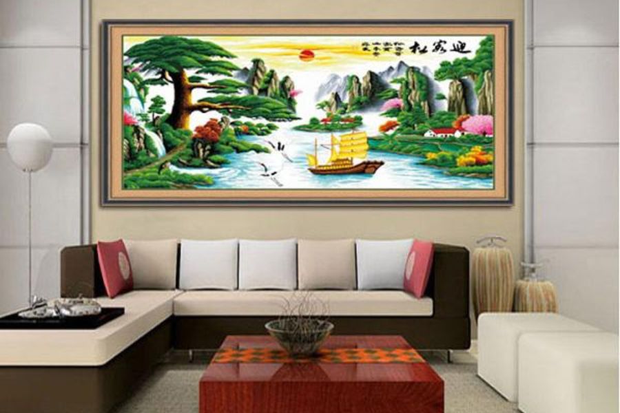 Cách trang trí: Treo khung tranh, ảnh có màu sắc tươi sáng, chủ đề về Tết trên tường hoặc đặt trên các quầy kệ.