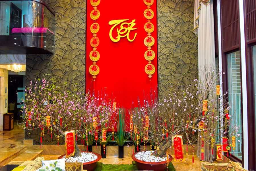 Trang Trí Cửa Hàng Dịp Tết Với Tông Màu Truyền Thống