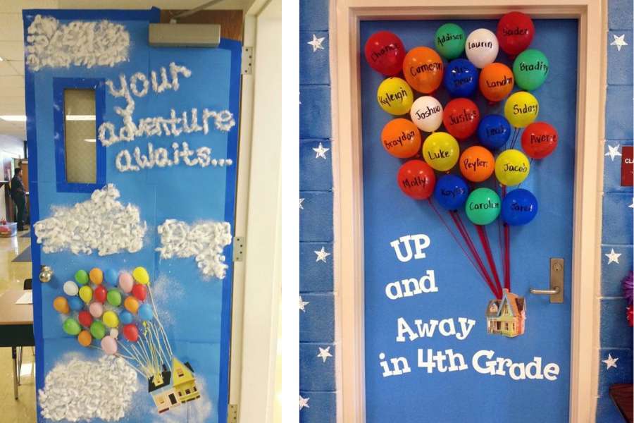 Dưới đây là một số ý tưởng để trang trí cánh cửa lớp với bóng bay:
