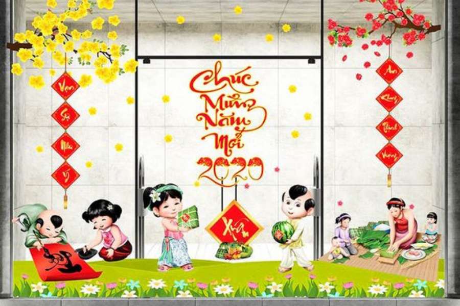 - Decal dán lồng đèn: Sử dụng các decal có hình ảnh lồng đèn truyền thống để trang trí cửa lớp học vào các dịp lễ tết, tạo cảm giác ấm cúng và trang trọng.