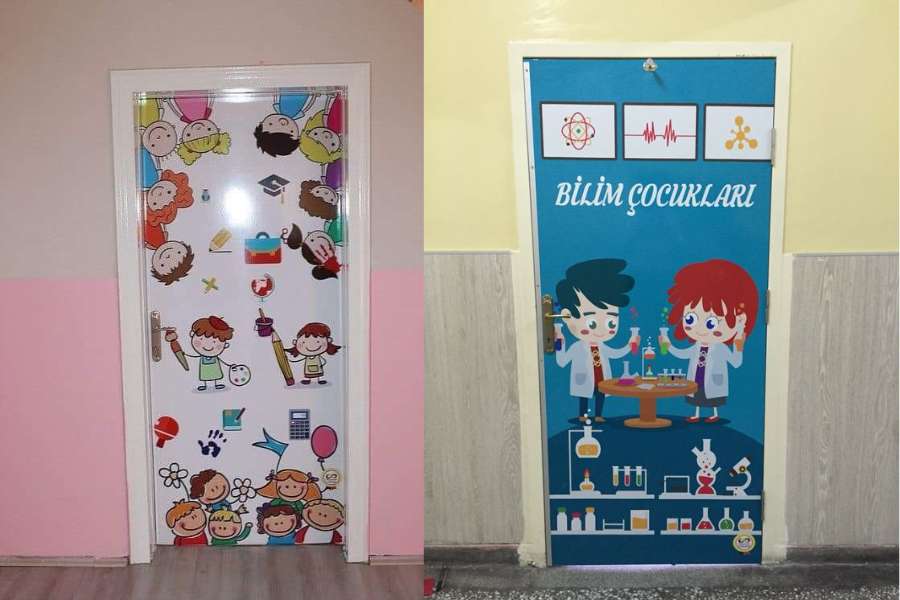 - Các hình dán về chủ đề giáo dục: Sử dụng các hình dán về chủ đề giáo dục như hình sách, hình chữ cái, hoặc hình số để trang trí cửa lớp học. Điều này sẽ giúp cho trẻ em có thêm hứng thú với việc học hỏi và khám phá kiến thức mới.