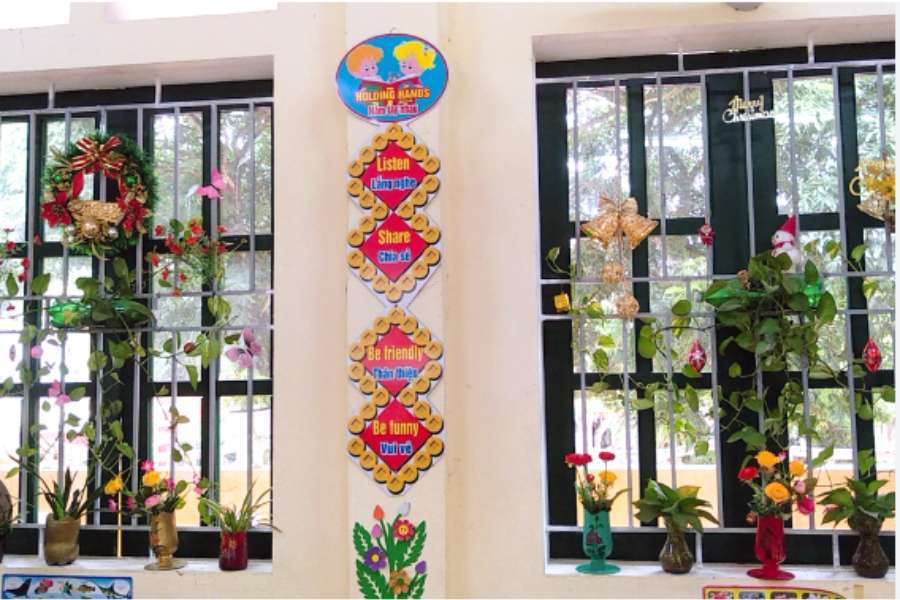 - Thường xuyên vệ sinh: Các vật dụng trang trí cửa lớp cần được vệ sinh thường xuyên, tránh bụi bẩn hay các vi khuẩn phát triển gây hại cho trẻ nhỏ.