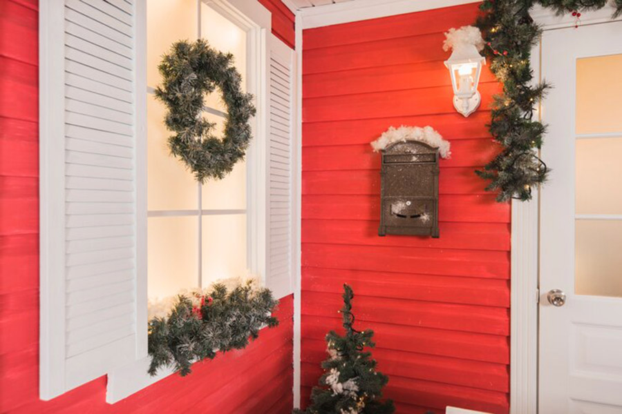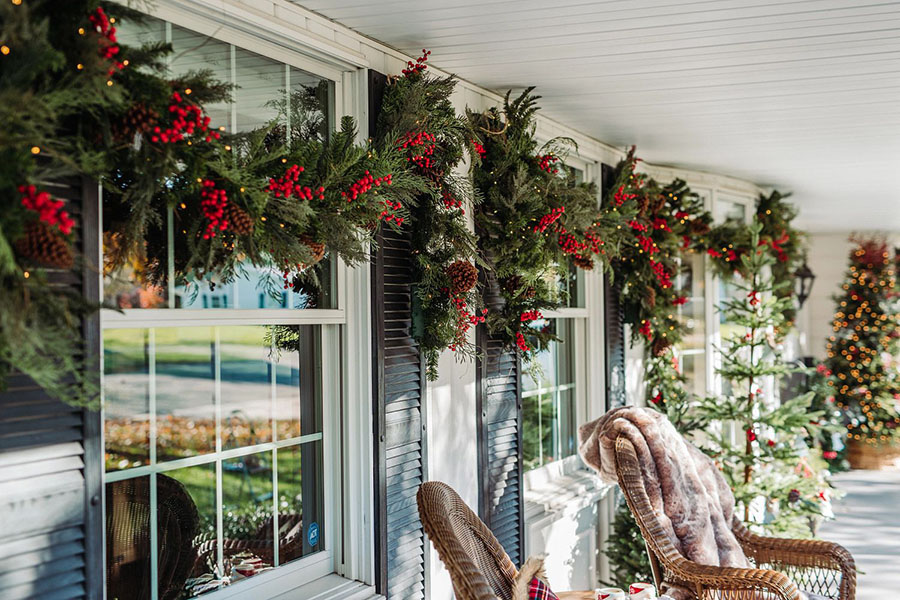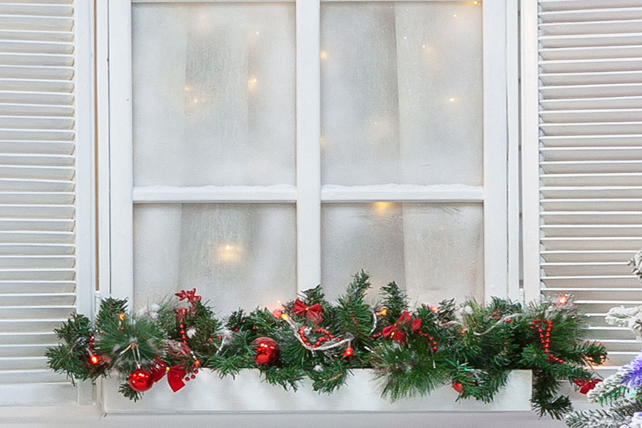 Trang trí khung cửa sổ Noel bằng dải hoa và vòng hoa
