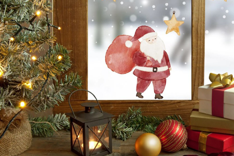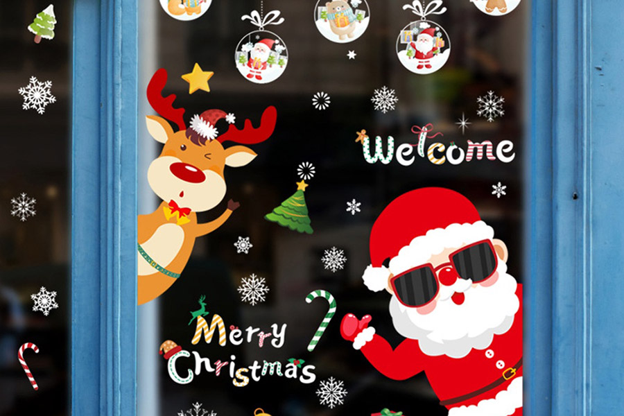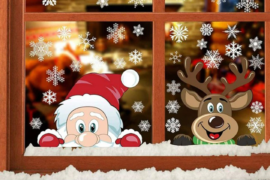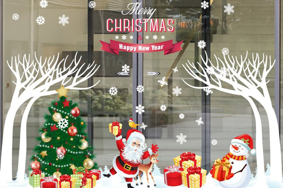 Bạn cũng có thể trang trí cửa sổ bằng cách dùng decal tạo thành một bức tranh Noel hoàn chỉnh với nhiều chi tiết. Chẳng hạn như khung cảnh ông già Noel, chú tuần lộc, người tuyết… cùng vui đón Giáng Sinh giữa trời tuyết trắng.