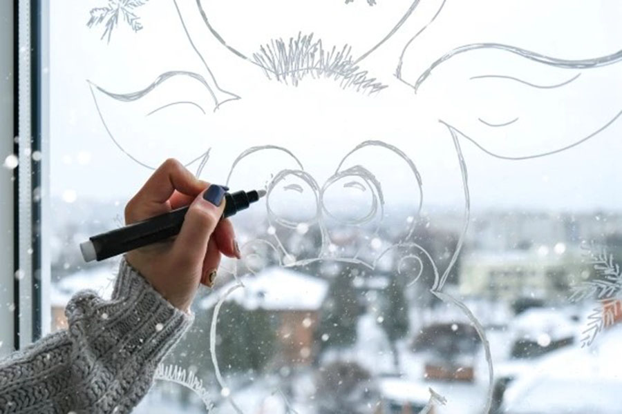 Ý tưởng trang trí cửa sổ Noel bằng bút xóa