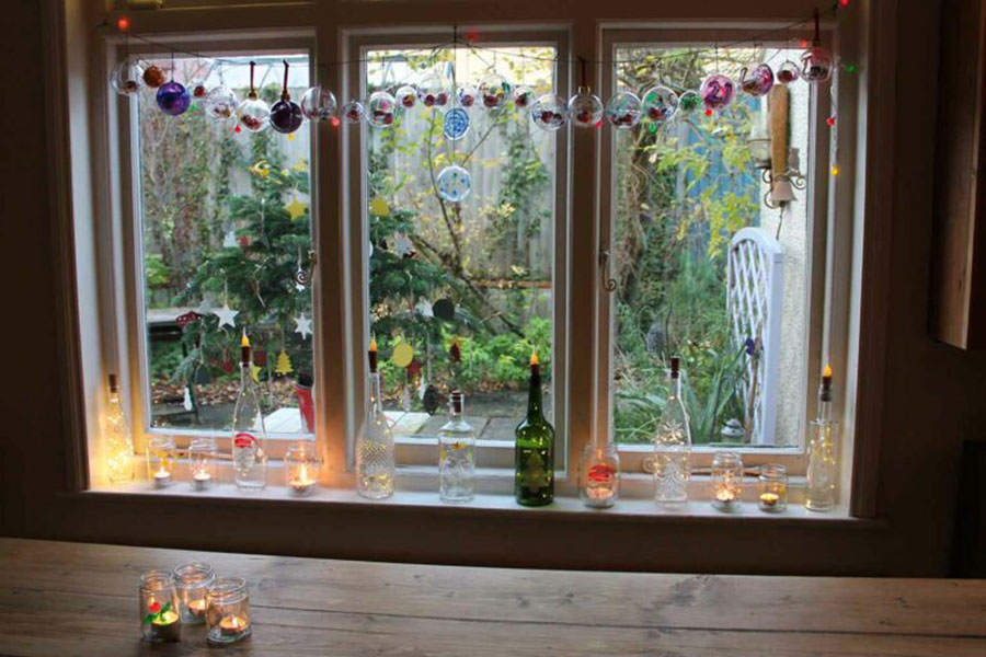 Bạn có thể kết hợp cành thông khô với các lọ thủy tinh, dây đèn led trang trí, treo quả châu,… và đặt bên cửa sổ. Chỉ với các bước đơn giản, giờ đây khung cửa sổ nhà bạn đã trở nên mang đậm dấu ấn mùa Giáng Sinh.