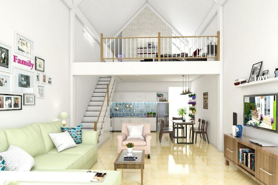 - Đối với nhà cấp 4 có diện tích hạn chế, hãy thiết kế gác lửng theo hướng không gian mở để tạo cảm giác thoáng đãng và rộng rãi hơn.