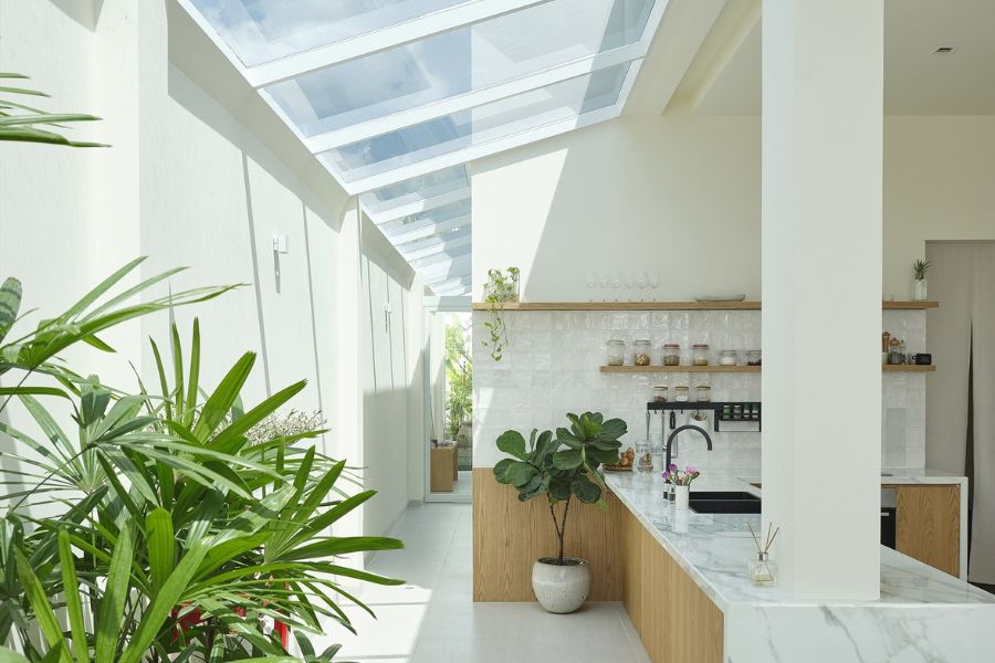 - Ánh sáng tự nhiên: Giếng trời cho phép ánh sáng mặt trời chiếu vào không gian bên trong nhà, tạo ra một môi trường sáng tự nhiên.