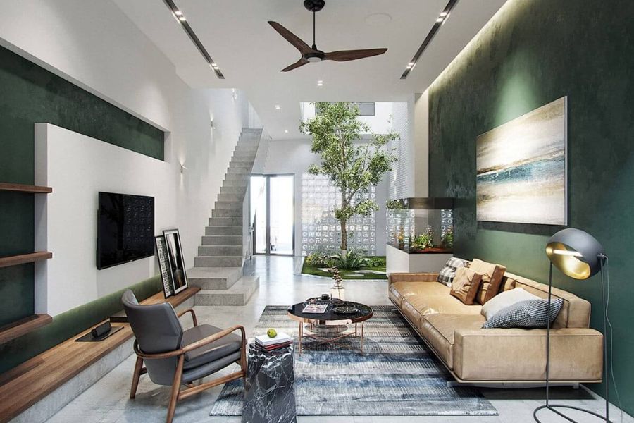 - Chọn nội thất nhẹ nhàng, tối giản khi trang trí giếng trời nhà ống để không che phủ ánh sáng và không gian.