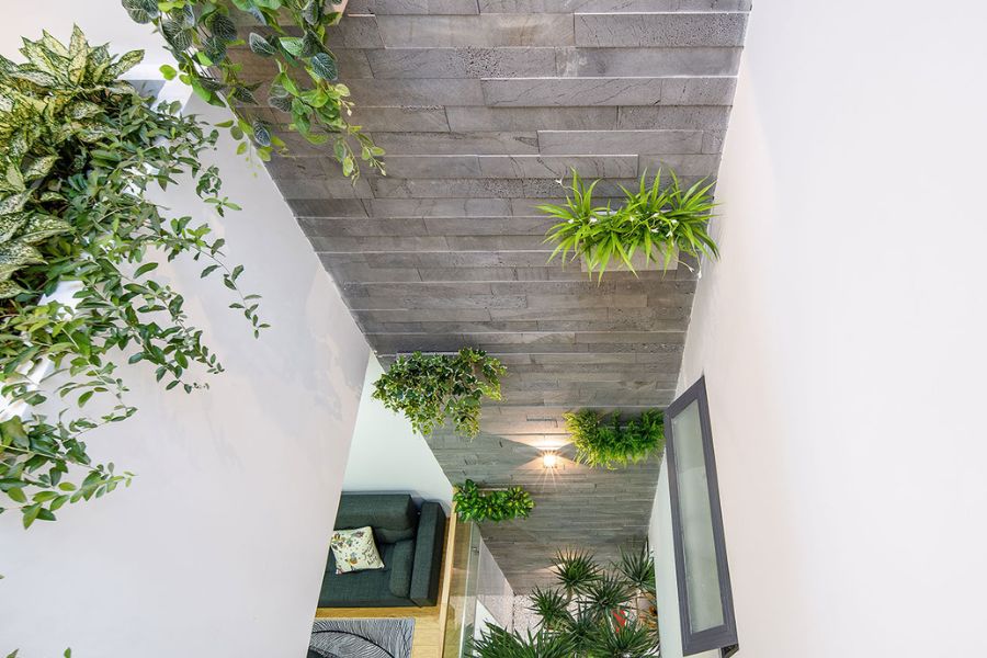 - Treo cây cảnh xuống từ giếng trời để tạo không gian xanh mát và gần gũi với thiên nhiên.