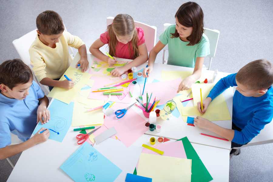 Những món đồ mà các bạn trẻ thường sử dụng ở trên lớp học như bút màu, bút chì màu, giấy vẽ,… luôn là những món đồ gần gũi nhất. Các thầy cô có thể trực tiếp sử dụng chúng trong việc sáng tạo decor góc toán mầm non.