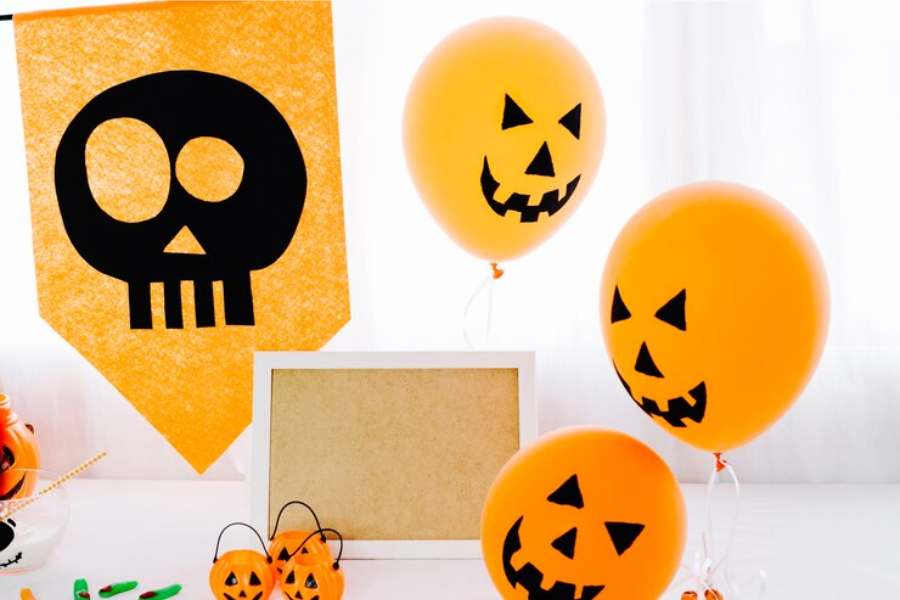 Bên cạnh đó, việc sử dụng bóng bay để trang trí Halloween cho lớp học vừa giúp tiết kiệm được rất nhiều thời gian cho việc trang trí và vừa tạo ra một không gian Halloween ấn tượng và huyền bí. Ngoài ra, bạn nên sáng tạo bằng cách vẽ những hình ảnh như quả bí ngô, đàn dơi, phù thuỷ….lên bong bóng để giúp cho không gian thêm sống động hơn.