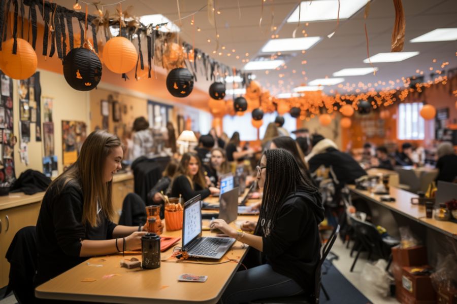 Việc trang trí Halloween cho lớp học ngày càng được ưa chuộng và phổ biến, nhằm tạo ra một không gian học tập mới lạ và độc đáo. Nếu bạn chưa có ý tưởng sáng tạo nào để trang trí, hãy cùng bTaskee tham khảo ngay những cách trang trí vô cùng mới lạ sau đây.