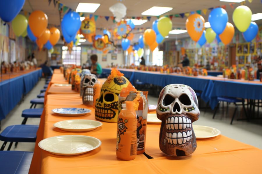 Bạn nên đặt bộ xương ở phía cuối của lớp học để làm cho không gian trở nên kinh dị hơn. Ngoài ra, có thể sử dụng những phụ kiện như hình đầu lâu, nhện giả, quả bí ngô để trang trí trên tường, bàn học để giúp không khí halloween thêm đặc sắc hơn.