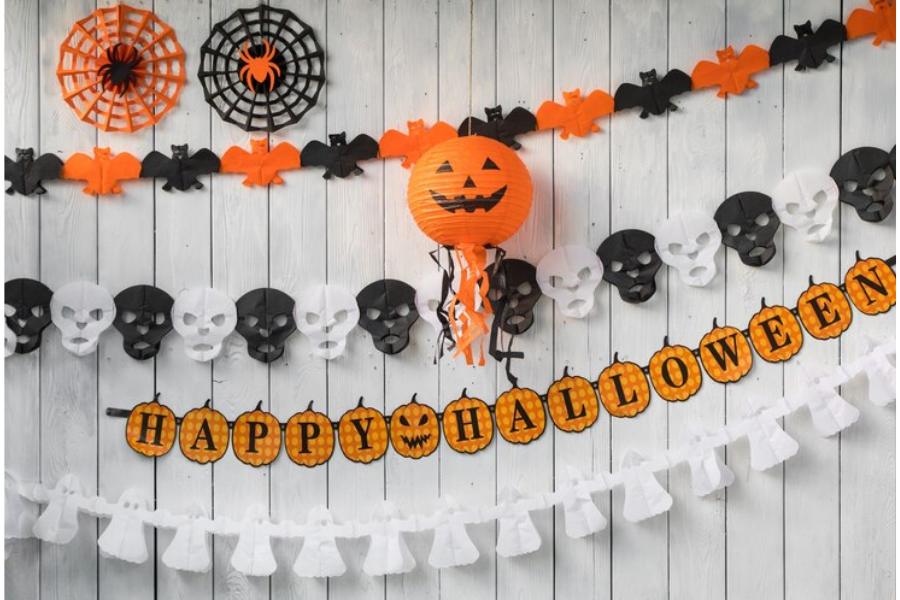 Ngoài những ý tưởng trang trí trên thì việc sử dụng dây cờ có in dòng chữ “Halloween” và các hình ảnh quả bí ngô làm phụ kiện trang trí cũng là một trong những lựa chọn hàng đầu của nhiều người.