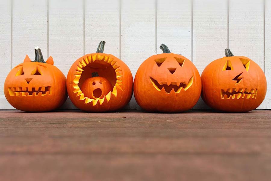 Nhắc đến lễ hội Halloween thì hình ảnh quen thuộc nhất với chúng ta chắc chắn là những trái bí ngô khoét mặt quỷ, thắp đèn bên trong. Để tạo nên không gian ma quái và kỳ bí cho văn phòng, bạn có thể khoét lỗ trên bí ngô và tạo ra các hình thù độc đáo. Chẳng hạn như khuôn mặt ma quái đến các ký tự kinh dị.
