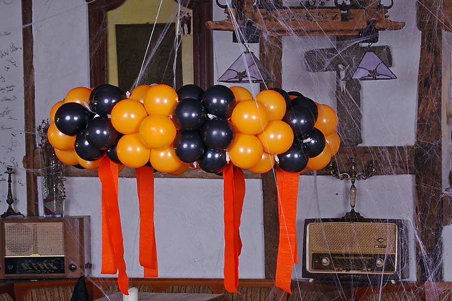 Với cách trang trí này đảm bảo văn phòng của bạn sẽ trở nên vô cùng độc đáo và kỳ bí. Những quả bóng ngập tràn sắc màu và kích thước, được treo ở khắp mọi nơi sẽ là ý tưởng trang trí Halloween cho văn phòng lý tưởng.
