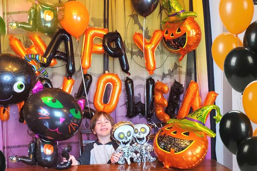 Bạn nên cột bong bóng thành từng chùm lớn, kết hợp với bong bóng chữ HALLOWEEN đã tạo thành một background cực chất để mọi người check-in rồi. Bên cạnh đó, bong bóng có thể treo trên tường, góc bàn làm việc hoặc kết hợp cùng dây trang trí để tạo thành cổng chào bắt mắt.