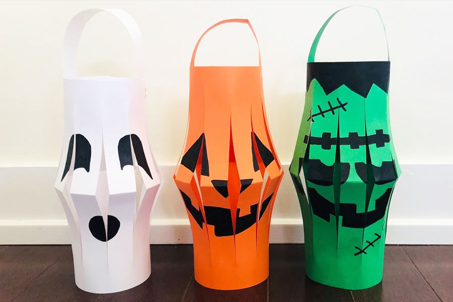 - Cắt giấy thành các miếng tam giác cỡ bàn tay, vẽ lên những hình thù ma quái. Sau đó lồng các mảnh giấy vào dây rồi treo trong văn phòng cũng rất thú vị.