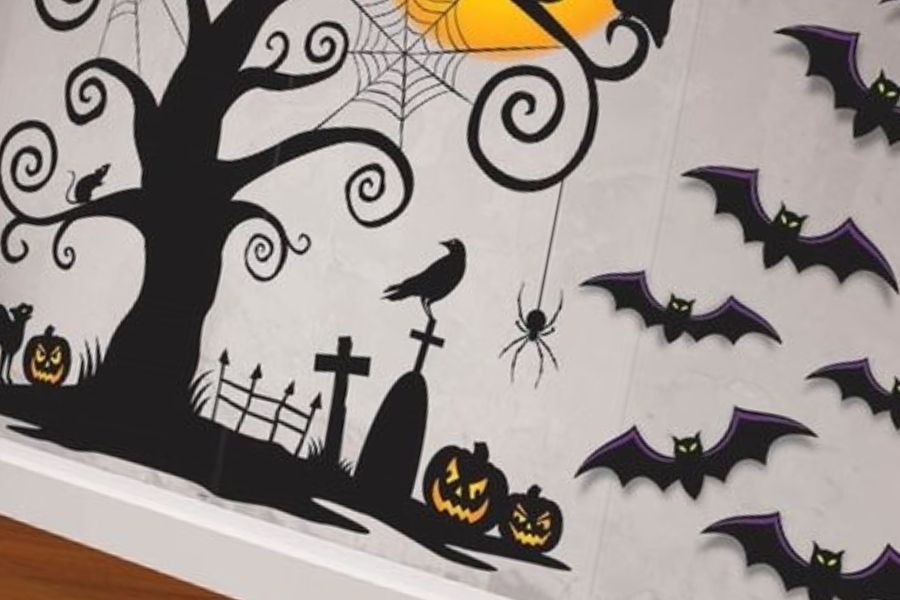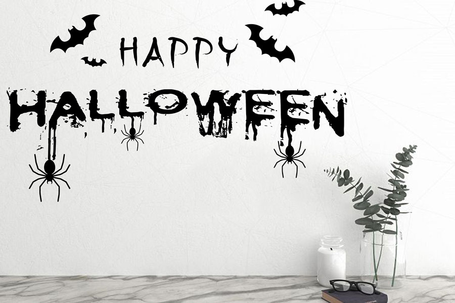 Khi làm background cho tiệc Halloween văn phòng, bạn có thể tham khảo các mẫu hình dán và decal. Chi phí in decal khá rẻ, dán lên và gỡ đi sau tiệc cũng rất nhanh chóng, dễ dàng. Hình thì rất đa dạng, bạn có thể mua mẫu sẵn hoặc đặt in theo yêu cầu.