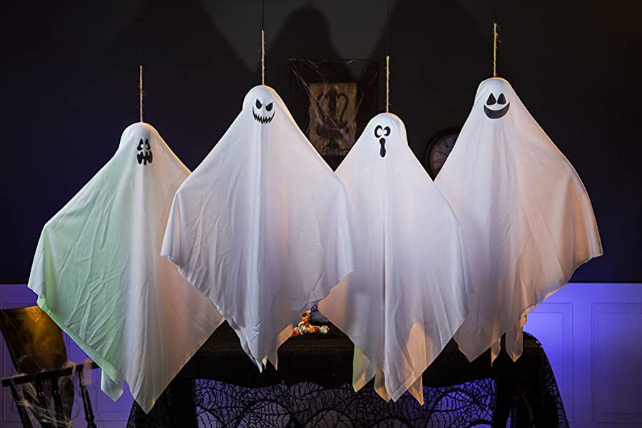 Ý tưởng trang trí Halloween cho văn phòng bằng vải trắng và đèn lồng