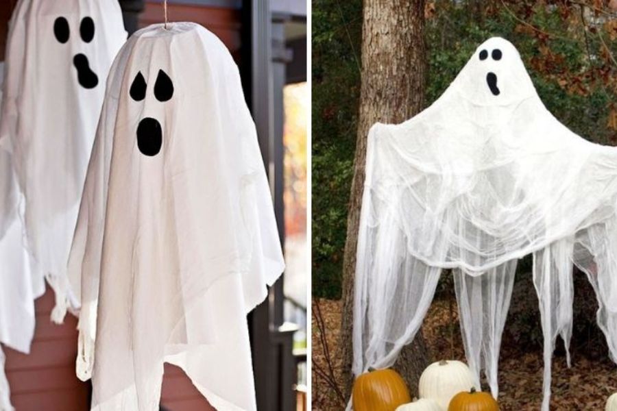 Với vải trắng bạn có thể dễ dàng biến tấu thành những hình nộm ma cực xịn. Các bước thực hiện khá đơn giản như sau: