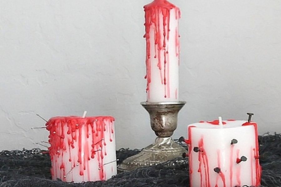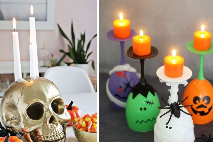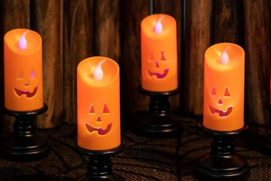 Nến cũng là một phụ kiện trang trí không thể bỏ qua trong dịp lễ hội hóa trang này. Những cây nến được cách điệu thành hình đầu lâu, xương người, cành củi khô là những vật trang trí đặc trưng cho đêm hội Halloween. Bạn có thể mua các sản phẩm này để đặt lên bàn làm việc, bệ cửa sổ để tạo thêm phần ma quái cho văn phòng nhân ngày Halloween.